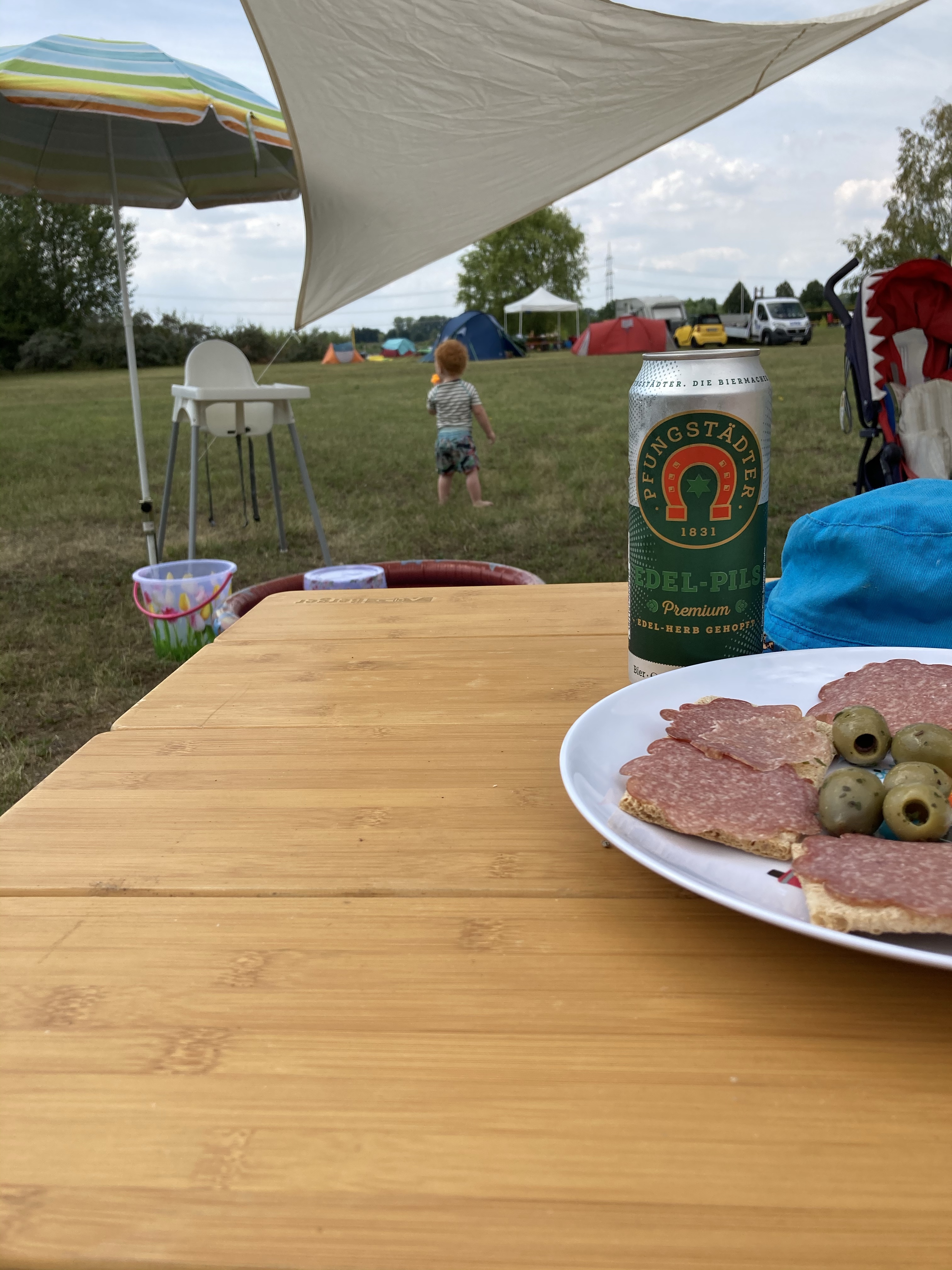 Fühlt sich gut an . Auch wenn wir auf dem Platz angekommen wieder irgendwie am Ende sind . Alles Zuviel . Platz auf der Wiese suchen , freie Platzzahl , eine Herausforderung für Menschen mit neurologischen Defiziten . Der Geist geht hin und her , ja nein vielleicht . Irgendwann stehen wir ,irgendwann ist alles aufgebaut. Irgendwann baden wir alle im See , trinken das erste Bier . Und strahlen alle wieder . Leben kann so gut sein . Wenn man es lässt . Wenn man mal wieder aufs Herz hört , mutig ist . Etwas wagt . Und sei es nur ein Wochenende am See .