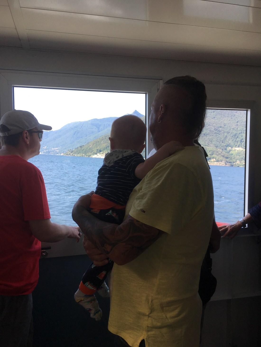 Mit dem Schiff zum Markt nach Cannobio. Eddie unterhält die Passagiere . Alles gut .