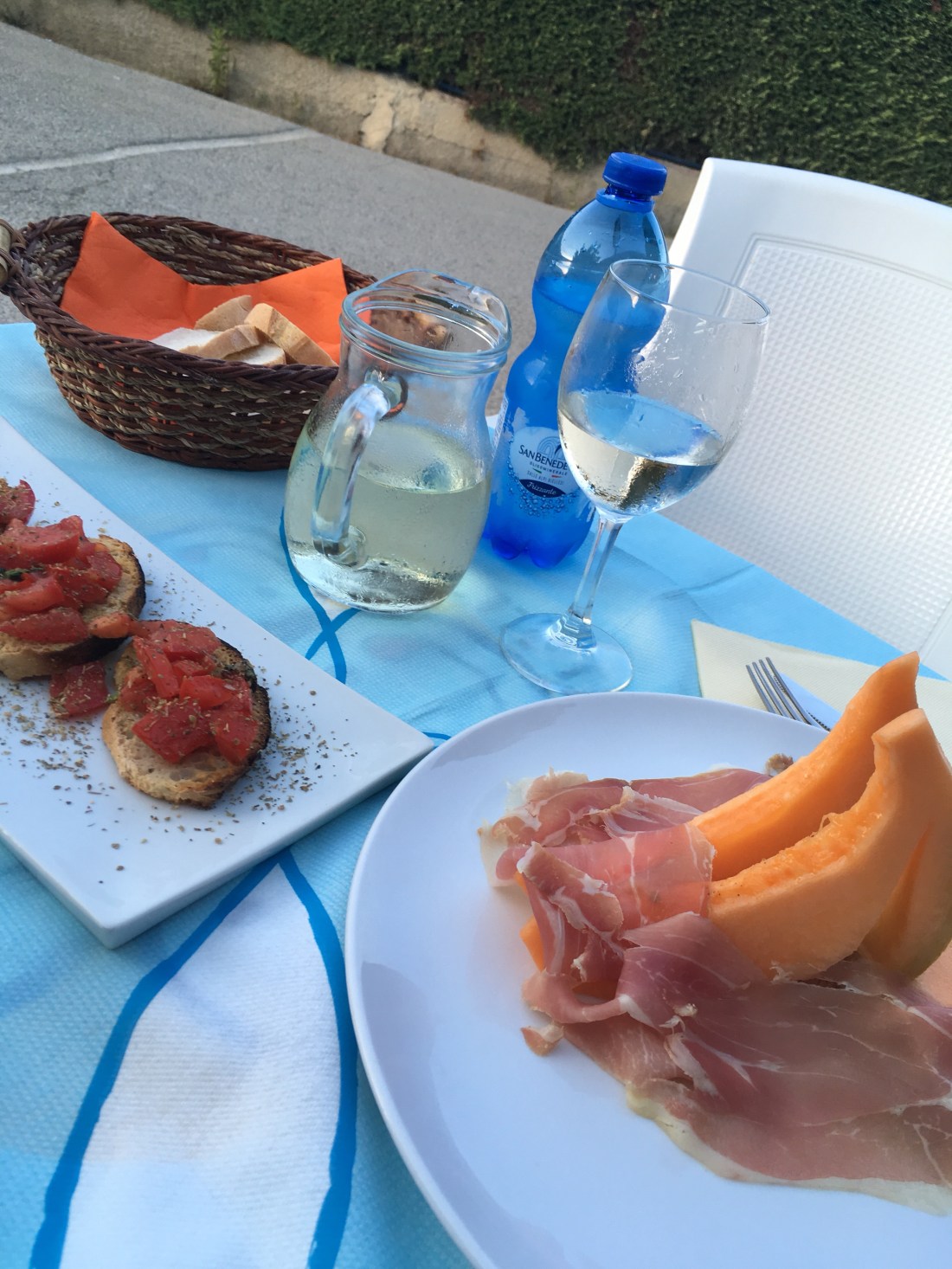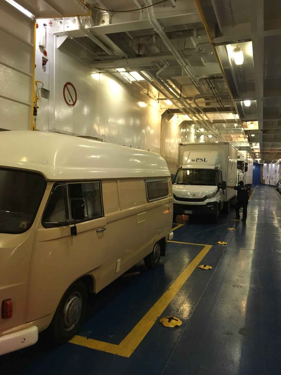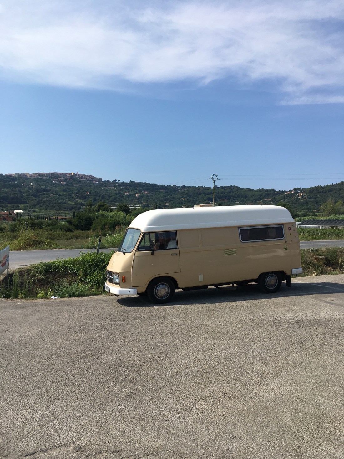 Vom Osten der Insel quer durch in den Westen. Natürlich über den höchsten Berg ( mit 20-30 km/h. ). Ein Platz, 2 freie Stellplätze. Sandstrand, aber : RIMINI !!!! Ist schon cool, wie Mimi dem Luigi sagt, das gefällt uns nicht. Hauptsaison, Wochenende, nichts gebucht, wahrscheinlich sind wir die einzigen mit einem one-way Fähre Ticket.