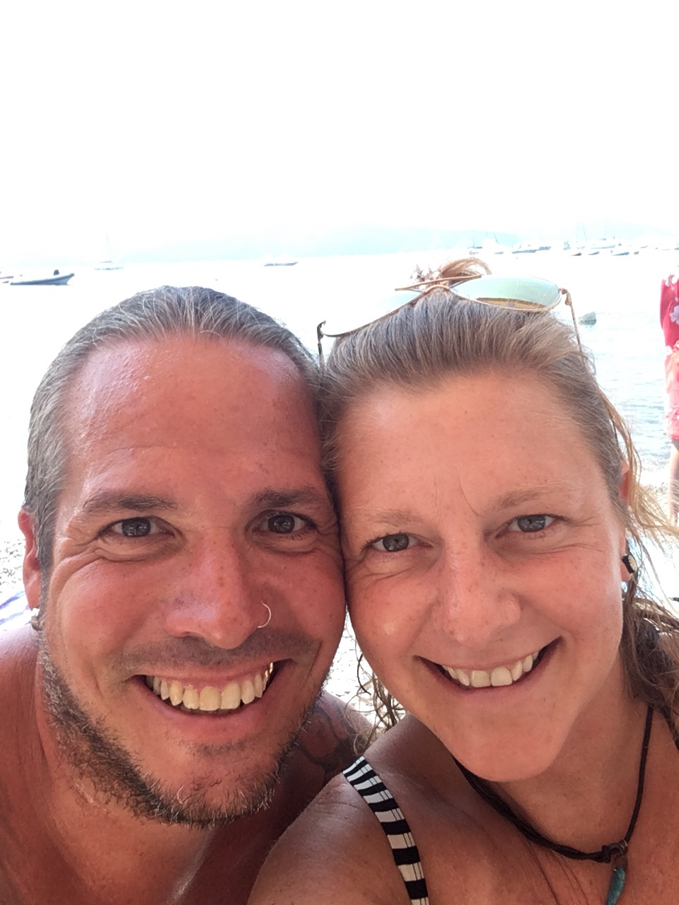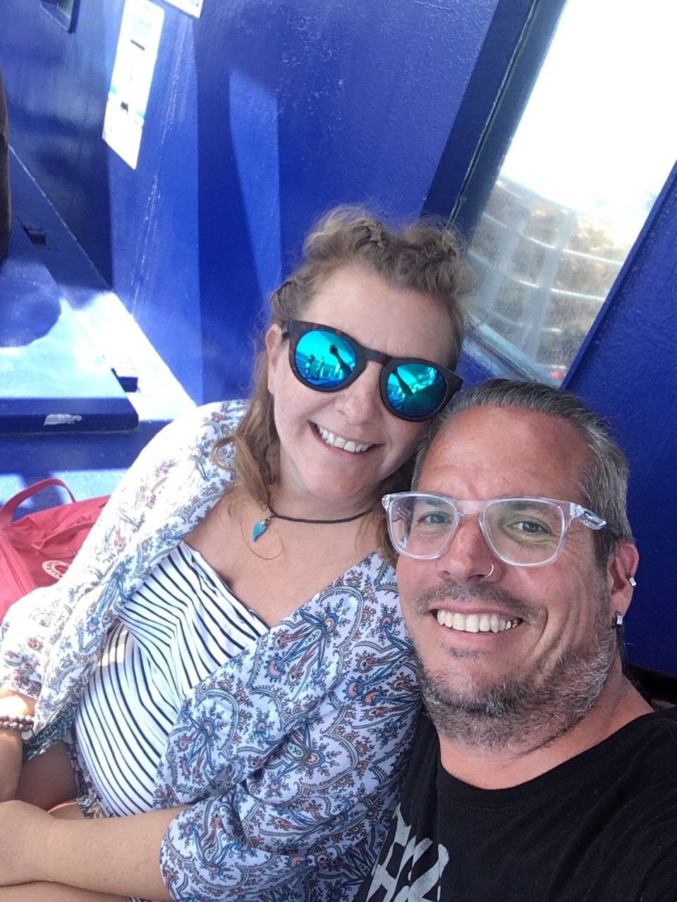 Also wieder zurück über den Berg, es war ja so schön, in die nächste Bucht. 3 Plätze, wir nehmen den mittleren. Mo kurz abgestellt, die Plätze angeschaut und uns für ein Platz nah am Meer entschieden. In der kurzen Zeit fährt uns irgendein W I X E R den Spiegel auf der Beifahrerseite kaputt. Es ist nicht unsere Insel. Der Frust wächst… abgestellt, angespannt, ne Maschine Wäsche gemacht und ab ins Meer… aber was ist das? Der Sandstrand geht bis ans Wasser, dann nur Steine. Baden nach links oder rechts zu den anderen?!?!?!? Na gut, zwischendurch die Wäsche in den Trockner. Ins Meer gehüpft, gelernt, dass auf der Südseite bei Südwind alles angeschwemmt wird… wieder nach der Wäsche gesehen, noch nass!!??!! Gesagt bekommen, man hätte doch den linken, statt den rechten nehmen sollen!!! Die 5€ zurück bekommen, aber der linke Trockner natürlich besetzt. Also es läuft richtig gut, tolle Insel. Und wie vorhin vermutet, sind wir echt die einzigen mit einem one-way-Ticket. Die sind alle schon zum 15. mal hier und es ist soooooo schön, wir glauben, die waren noch nirgends, wo es schön ist….