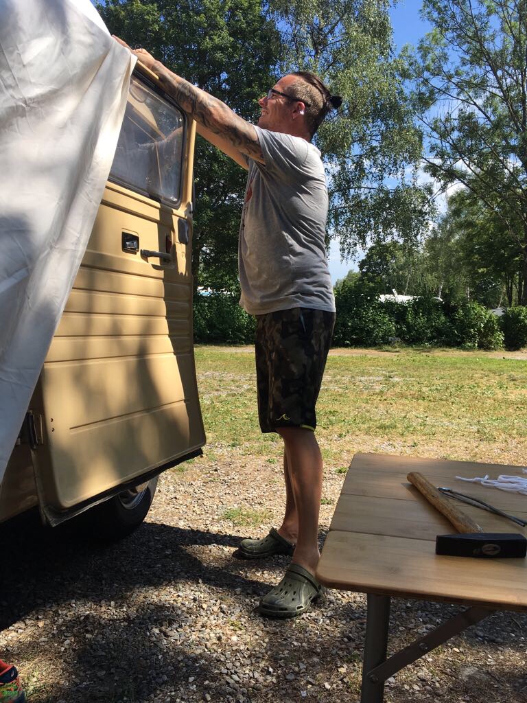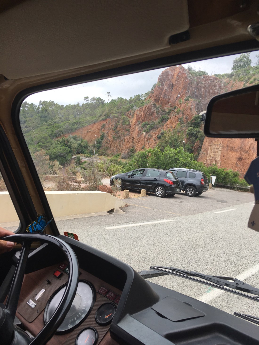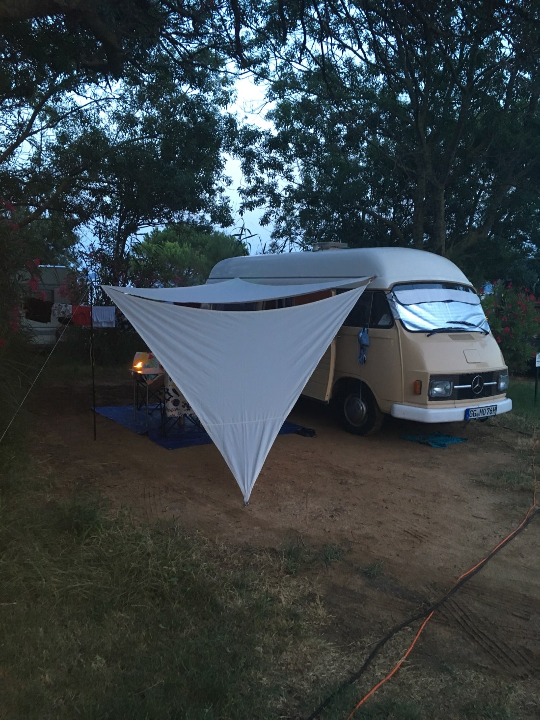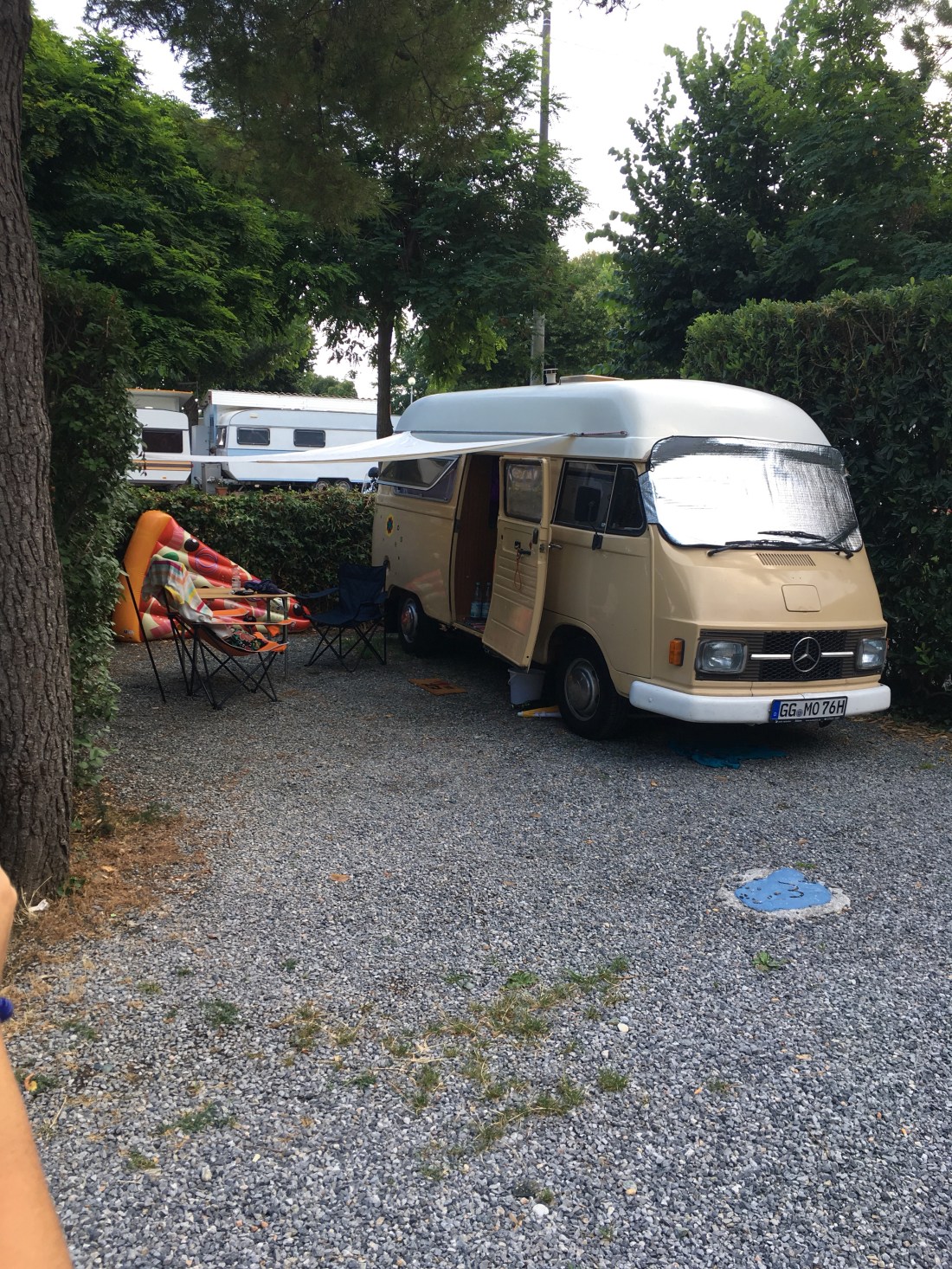 Irgendwie wollten wir nach Nizza oder doch Cannes?Wir fuhren einfach mal los. Enge Straßen, viel Verkehr , ganz Italien und Frankreich auf den Straßen.. und Mo mitten drin. Schnaufend , Kuppeln , bremsen, anfahren , zu eng, zu lang, zu behäbig.Herr Müller und Mimi angespannt. Keine gute Kombi . Wir Kurven durch Randgebiete von Trabantenstädten und irgendwann geben wir auf. Wollen nur noch raus ans Meer. Mo quält sich die Küstenstraße hoch und runter und irgendwo bei Cannes ein kleiner Campingplatz. Kommt Mimi bekannt vor .. hier war sie mal mit 17 und nem Rucksack . Eingecheckt , eine Nacht im Gewitter verbracht .Aber so richtig wohl fühlt sich niemand hier . Morgen gehts weiter . Und zwar ganz in Ruhe in unserem Tempo. Denn wir haben alle Drei unsere kleinen Defizite und können Stress nicht ab. Und schließlich : in der Ruhe liegt die Kraft. Ooooomm!