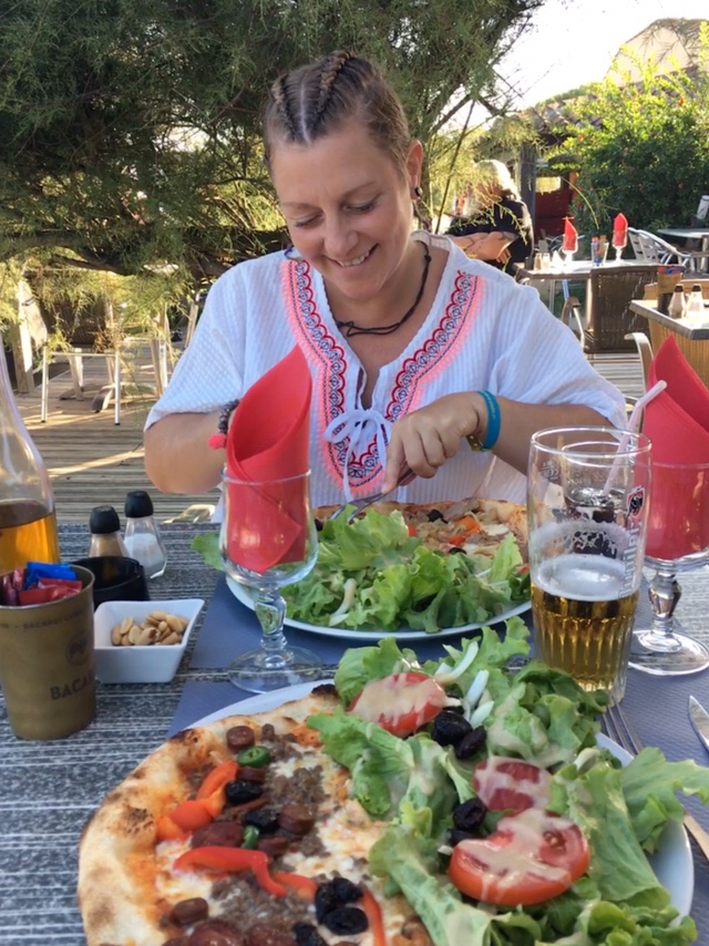 Das Meer war top, Sandstrand. Ein guter Platz mit viel Schatten. Es gab Croissants und Baguette, das fehlte in Italien. Einzig sind die Franzosen etwas gewöhnungsbedürftig. Wir überlegten schon, ob wir ein neues Buch schreiben sollten: Strandarschlöcher wäre ein passender Titel. Oder ob wir auch morgens früh am Strand unsere Handtücher zum platzaushalten auslegen sollten. Und vorher wie früher alle bereits liegenden ins Wasser werfen sollten. Naja, das drüber lachen, war wohl die beste Lösung.