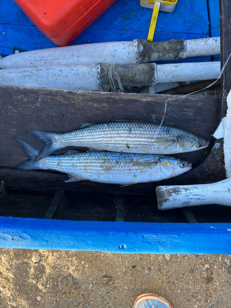 Herr Müller musste ihn diesmal einfach ansprechen und ihm die Bilder von vor vier Jahren zeigen. Er war sehr erfreut und holte sogar seine Frau, die ein paar Worte englisch sprechen kann. Herr Müller schickt Ihnen die Bilder und half das Boot ins Meer zu lassen. Er solle doch mit hinaus fahren, aber da das Meer sehr wild ist, wäre es wohl besser am nächsten Abend. Die Ausbeute dieses Abends waren 2 Fische, die den beiden aber das Abendessen sicherte.
