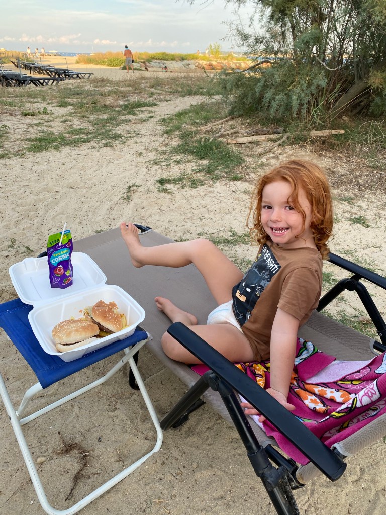 Eddie rast sofort zum Spielplatz, wir entscheiden uns für kühle Getränke.